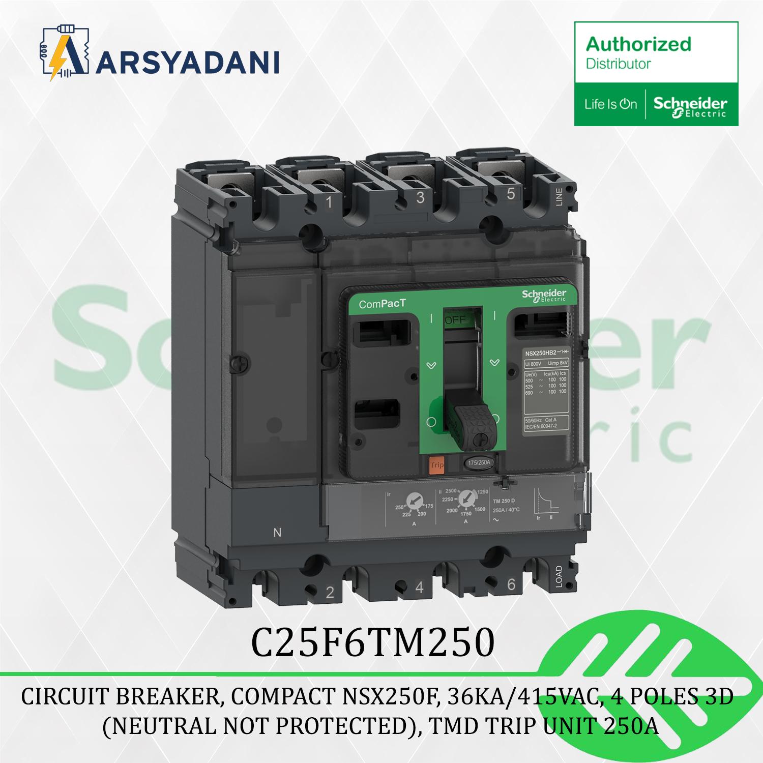 SCHNEIDER – C25F6TM250 – ComPacT NSX250F, 36kA/415VAC, 4 poles 3D –