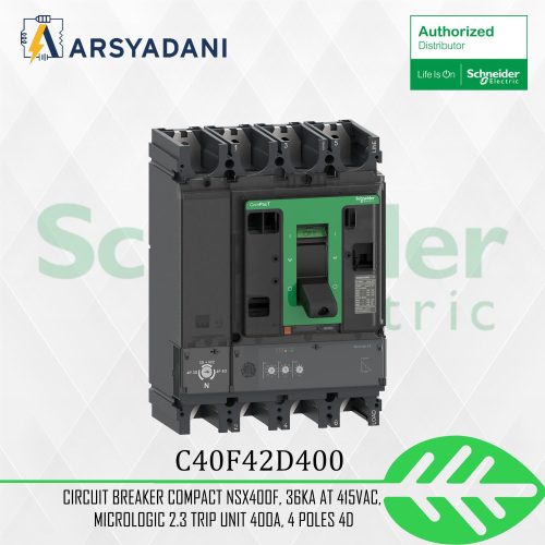 SCHNEIDER – C40F42D400 – Circuit breaker ComPacT NSX400F, 36kA at 415VAC, MicroLogic 2.3 trip unit 400A, 4 poles 4d