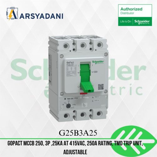 SCHNEIDER – G25B3A250 – GoPact 250, 3P ,25kA at 415VAC, 250A rating, TMD trip unit, adjustable