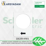 This Harmony ZB2BY4901 is a marked legend 30 x 40mm, white, marked with raise or right, slow symbol. It is an accessory of the range Harmony XAC pendant control stations for diameter 22mm plastic signaling units.